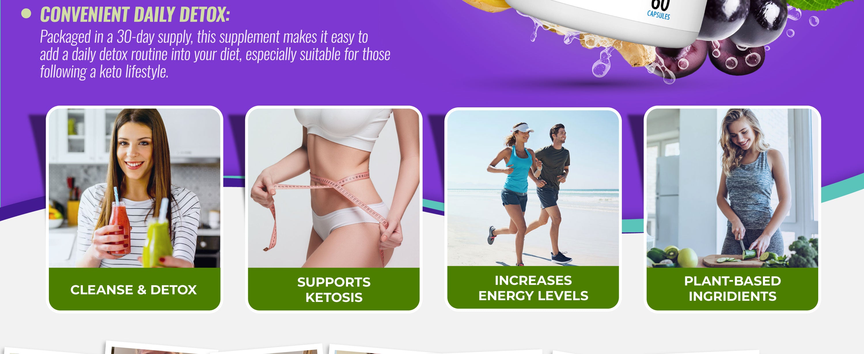 Eliminating toxins and impurities from your body is essential for optimal health and high energy. Colon cleansing helps flush out harmful toxins. Supplements, such as Keto Detox, support your keto lifestyle and diet so that you can achieve your weight goals. Our proprietary blend of advanced colon cleansing ingredients supports better energy and smooth digestion. Plus, this synergistic blend of plant-based nutrients – including psyllium powder, acai berry fruit extract, ginger root, papaya fruit powder, and aloe ferox powder – helps you flush out built-up toxins and impurities that get stuck in your digestive tract.*