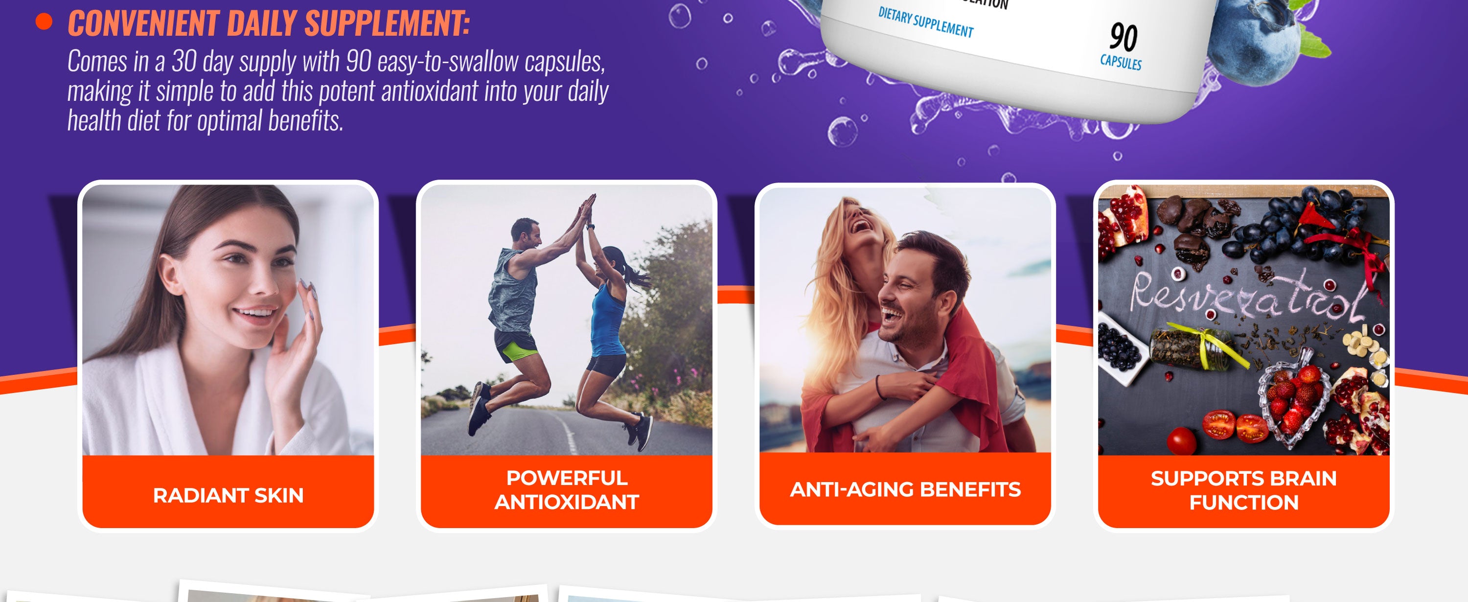 Antioxidants help protect cells from age-related wellness issues by protecting cells from free-radical damage. Free radicals can come from food, the environment, medications, and more. Antioxidants in resveratrol help fight cell damage from these free radicals.*